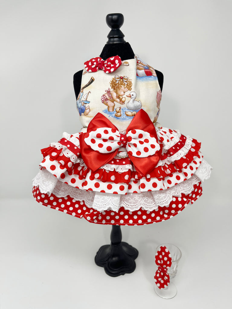 098 Printed Theme Dress with Red & White Polka Dots and Hair Bow Size S