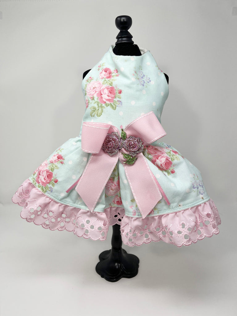 100 Pink and Blue Dress with Large Bow Size XS