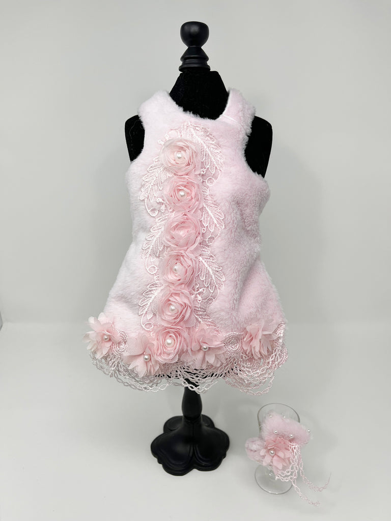 101 Pink Fur and Lace Dress Size XS