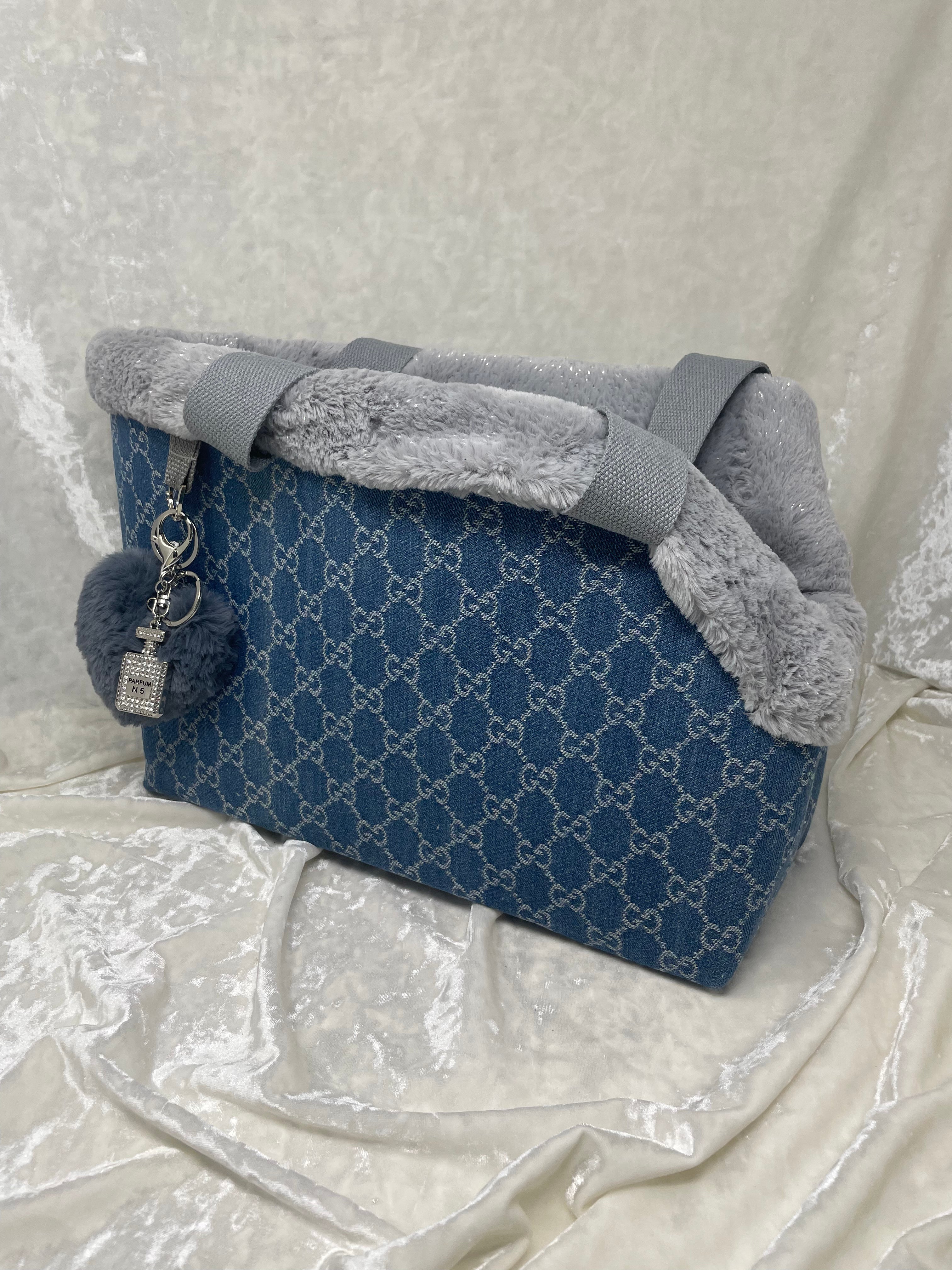 Handmade by Marian McElroy. Lined with faux fur with removable pad at the bottom and reinforced sides for comfort.